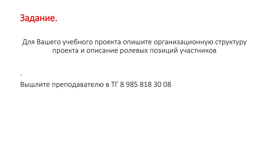 Задание.Для Вашего учебного проекта опишите организационную структуру