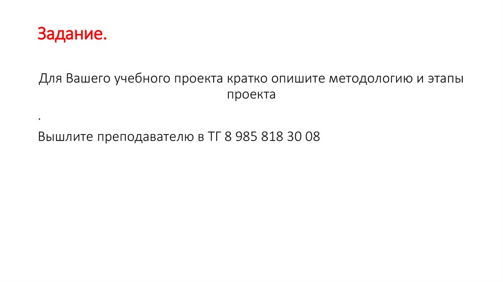 Задание.Для Вашего учебного проекта кратко опишите методологию и этапы