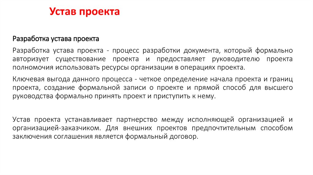 Разработка устава проекта - процесс разработки документа, который формально