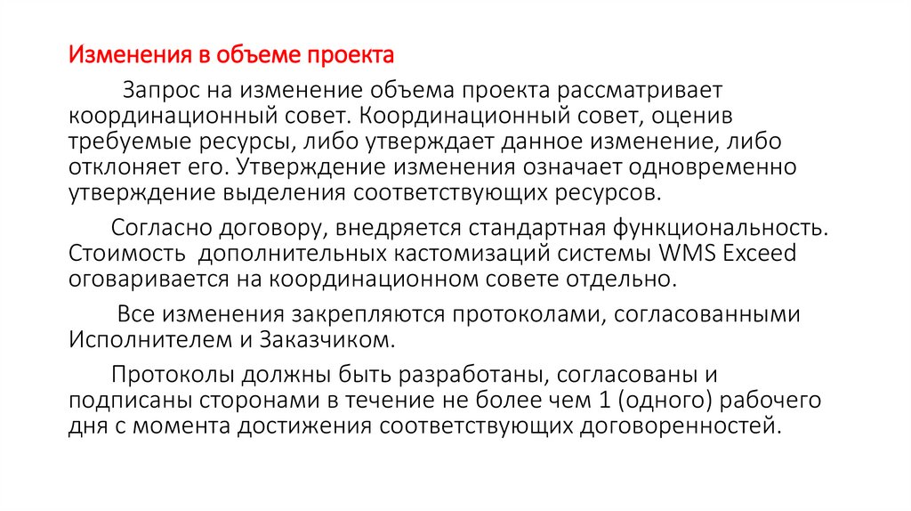 Изменения в объеме проектаЗапрос на изменение объема проекта рассматривает