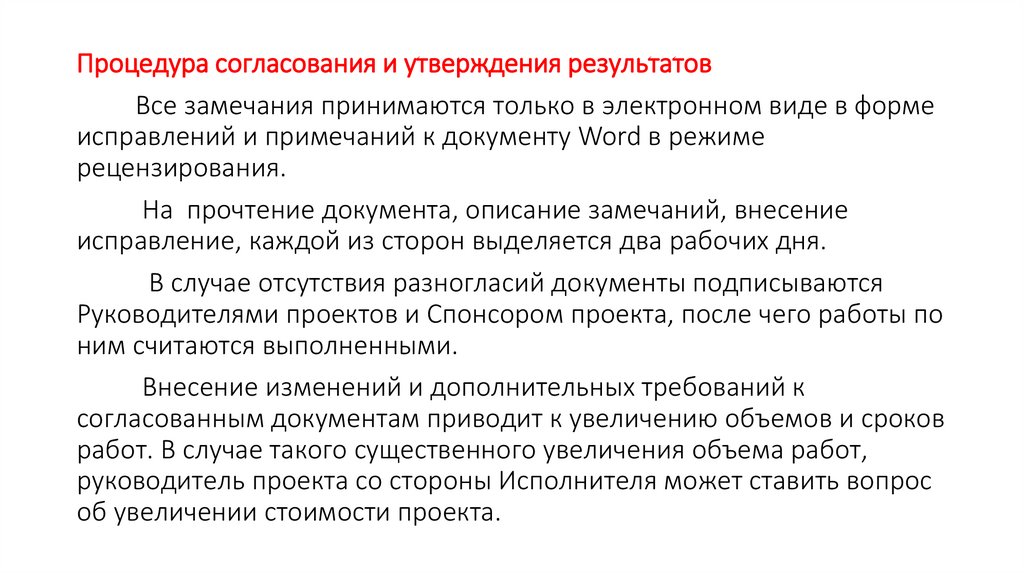 Процедура согласования и утверждения результатовВсе замечания принимаются только в электронном виде в форме