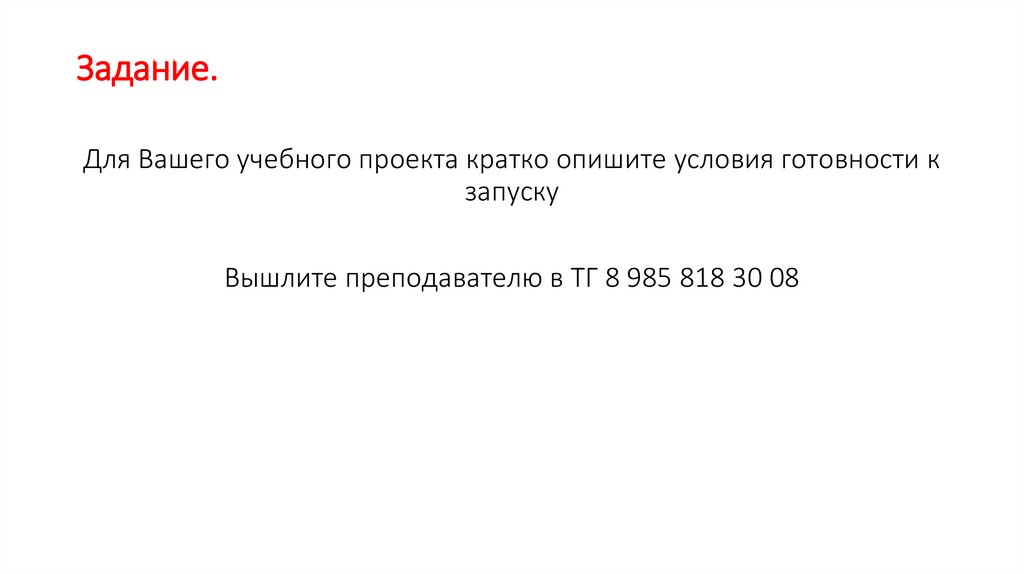 Задание.Для Вашего учебного проекта кратко опишите условия готовности к