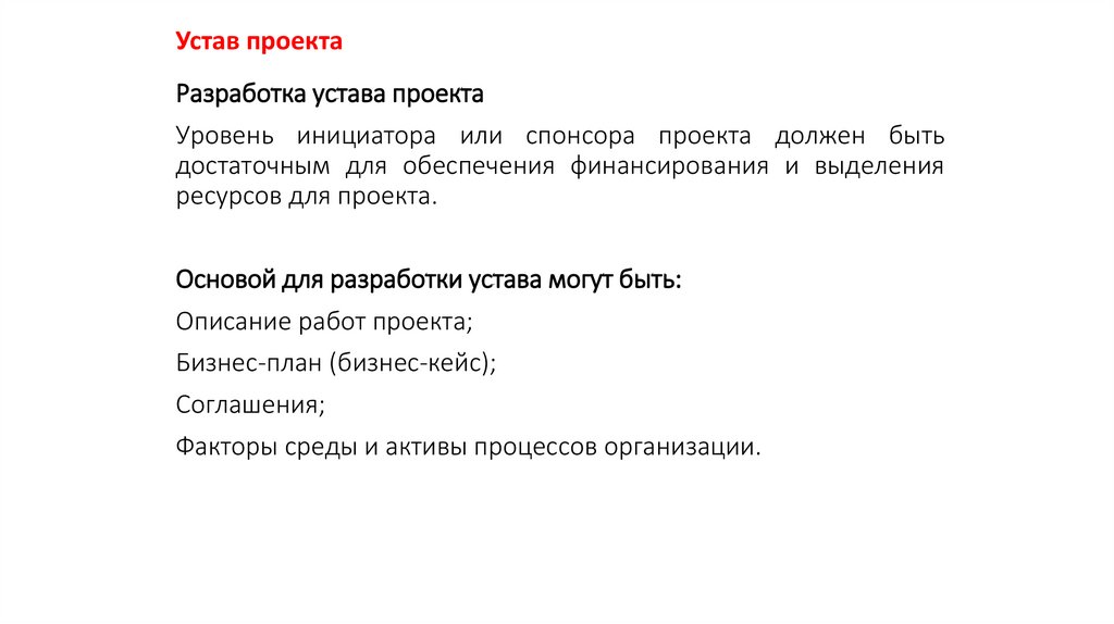 разработки устава проекта, включают в себя, среди прочего: