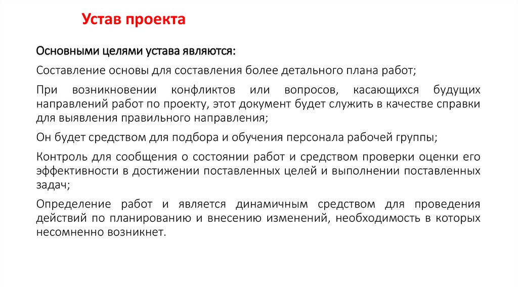 Устав проектаОсновными целями устава являются: