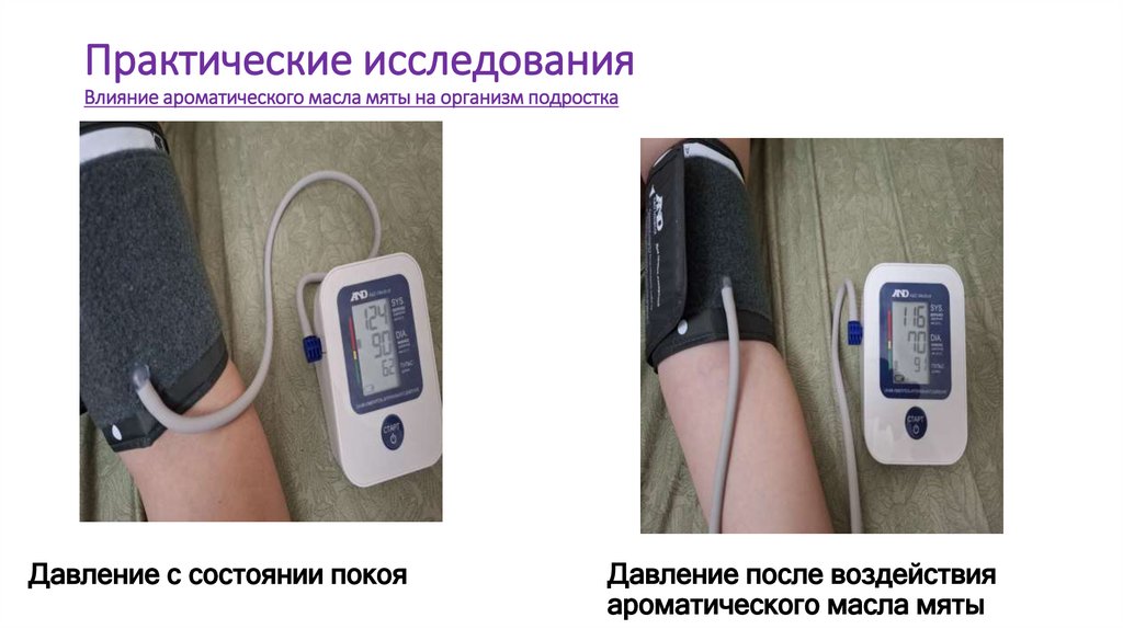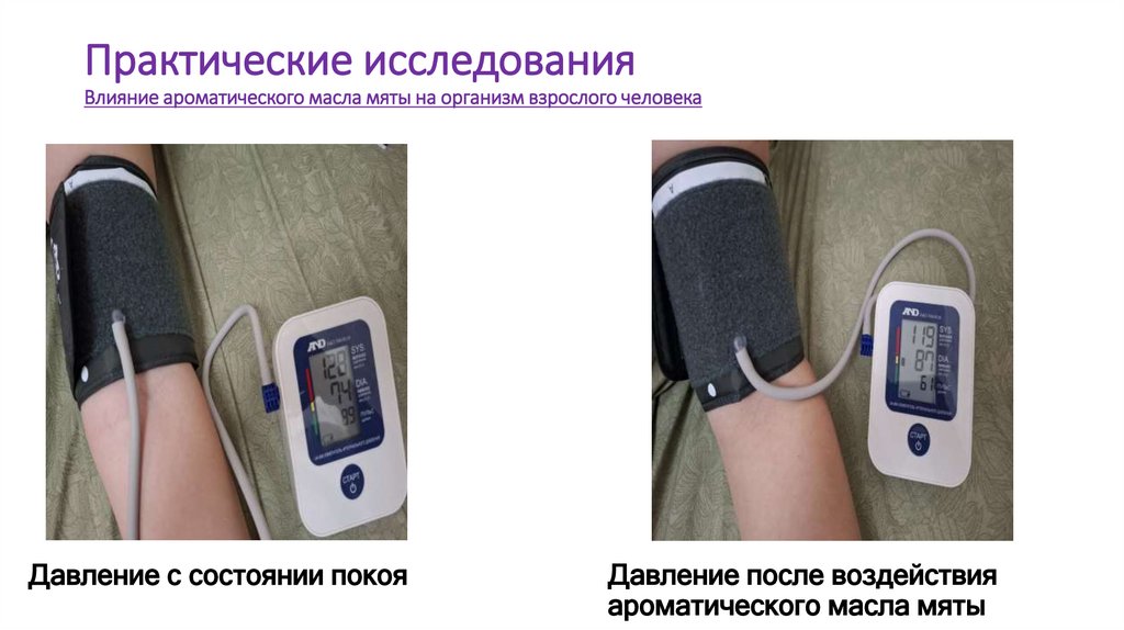 Практические исследованияВлияние ароматического масла мяты на организм взрослого человека