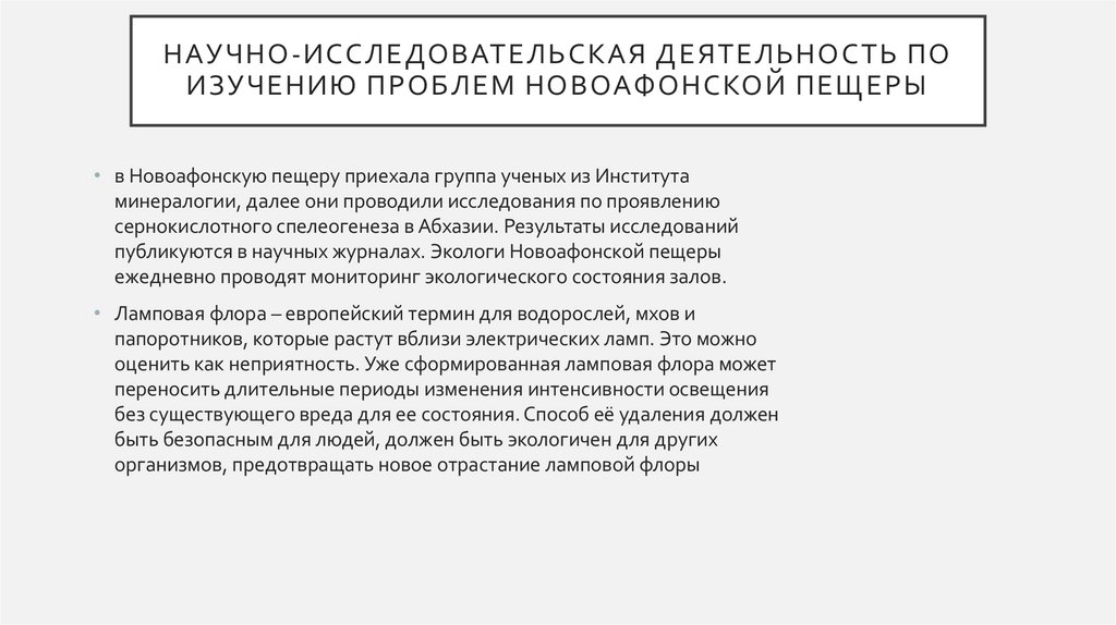 НАУЧНО-ИССЛЕДОВАТЕЛЬСКАЯ ДЕЯТЕЛЬНОСТЬ ПОИЗУЧЕНИЮ ПРОБЛЕМ НОВОАФОНСКОЙ ПЕЩЕРЫ