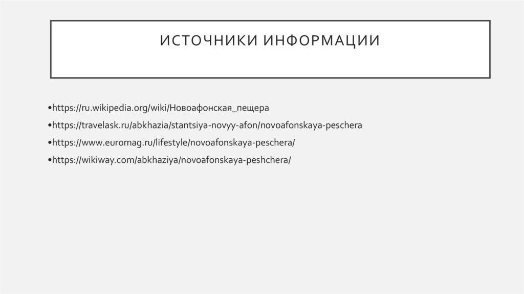 ИСТОЧНИКИ ИНФОРМАЦИИ•https://ru.wikipedia.org/wiki/Новоафонская_пещера
