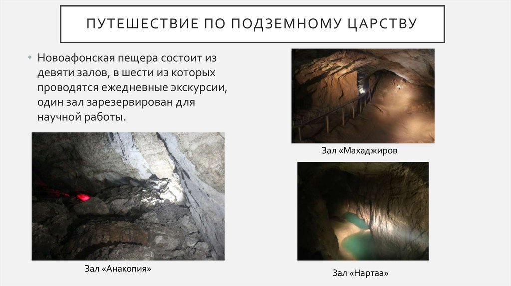 ПУТЕШЕСТВИЕ ПО ПОДЗЕМНОМУ ЦАРСТВУ• Новоафонская пещера состоит из