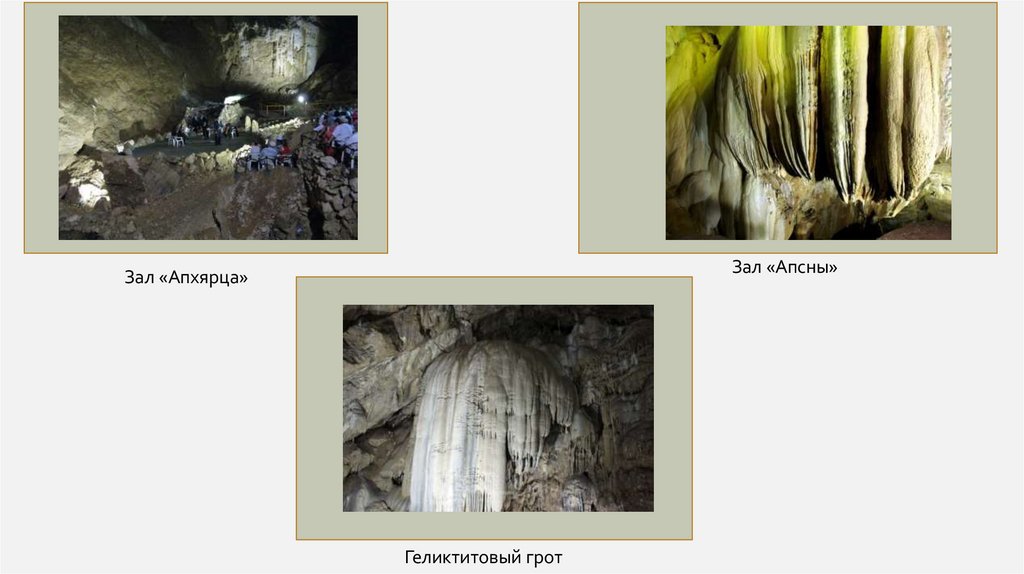 • Самые красивые залы пещеры — Зал имени Гиви Смыр, «Анакопия», Геликтитовый грот и