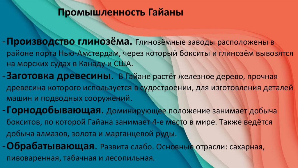Промышленность Гайаны-Производство глинозёма. Глинозёмные заводы расположены в