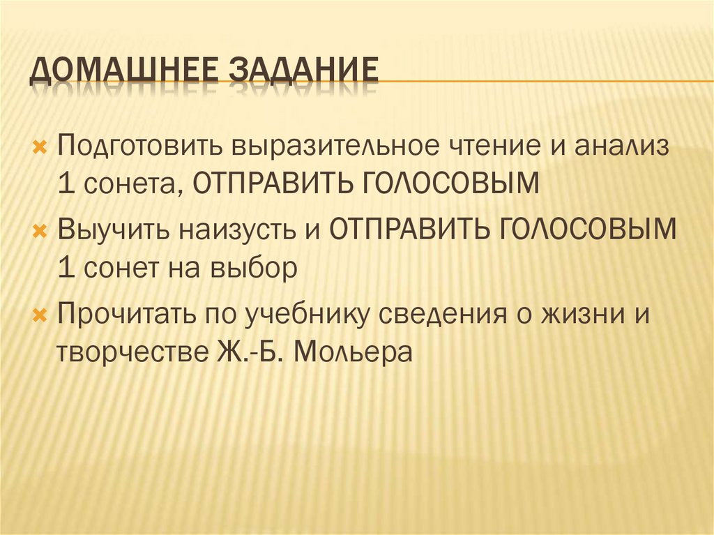 ДОМАШНЕЕ ЗАДАНИЕПодготовить выразительное чтение и анализ