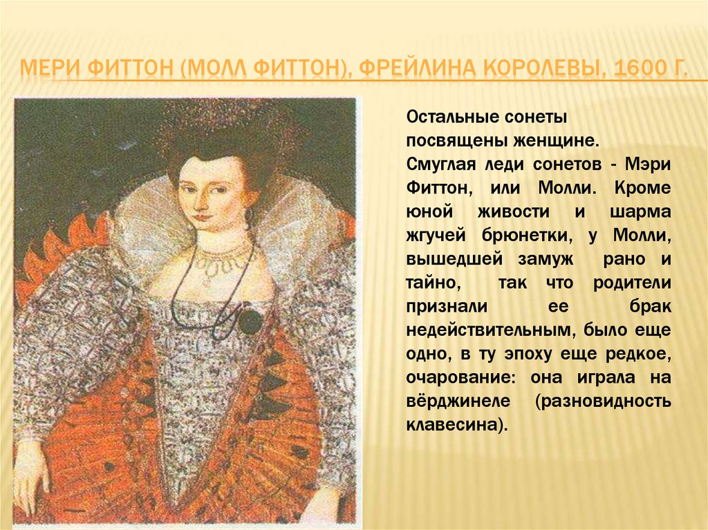 МЕРИ ФИТТОН (МОЛЛ ФИТТОН), ФРЕЙЛИНА КОРОЛЕВЫ, 1600 Г.Остальные сонеты