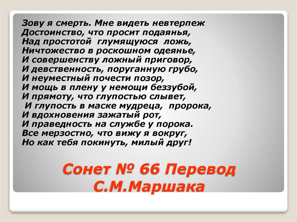 10. Сонет № 66 Перевод С.М.Маршака