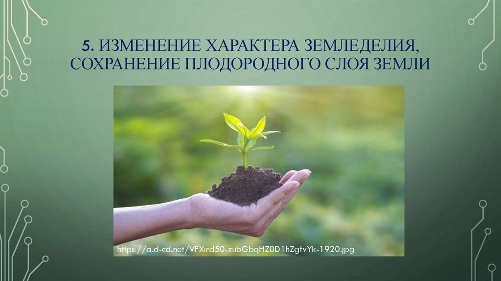 5. ИЗМЕНЕНИЕ ХАРАКТЕРА ЗЕМЛЕДЕЛИЯ,СОХРАНЕНИЕ ПЛОДОРОДНОГО СЛОЯ ЗЕМЛИ