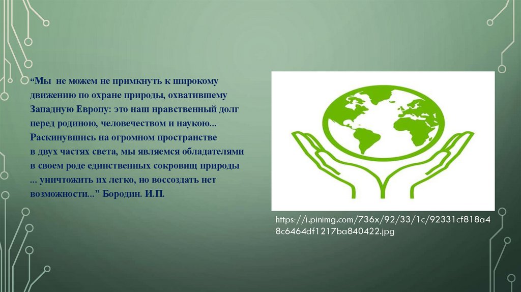 “Мы не можем не примкнуть к широкомудвижению по охране природы, охватившему