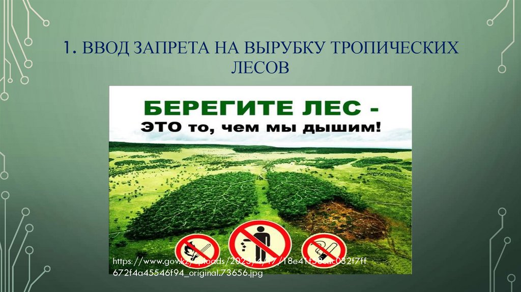 1. ВВОД ЗАПРЕТА НА ВЫРУБКУ ТРОПИЧЕСКИХЛЕСОВ