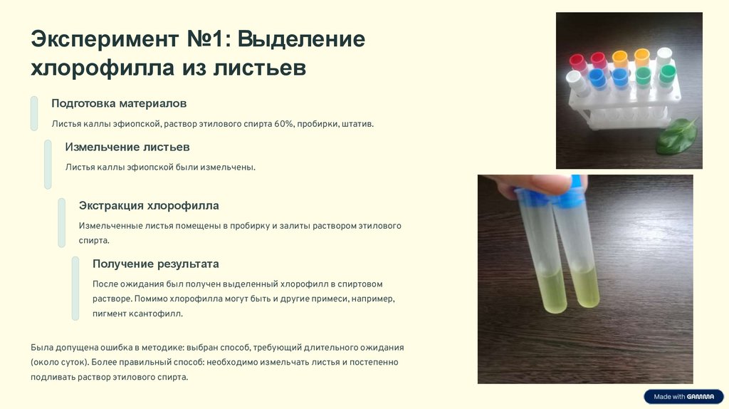- Гипотеза исследования: хлорофилл легко выделяется самостоятельно