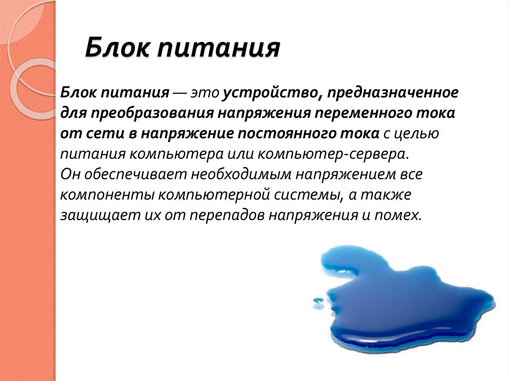 Блок питания — это устройство, предназначенноедля преобразования напряжения переменного тока