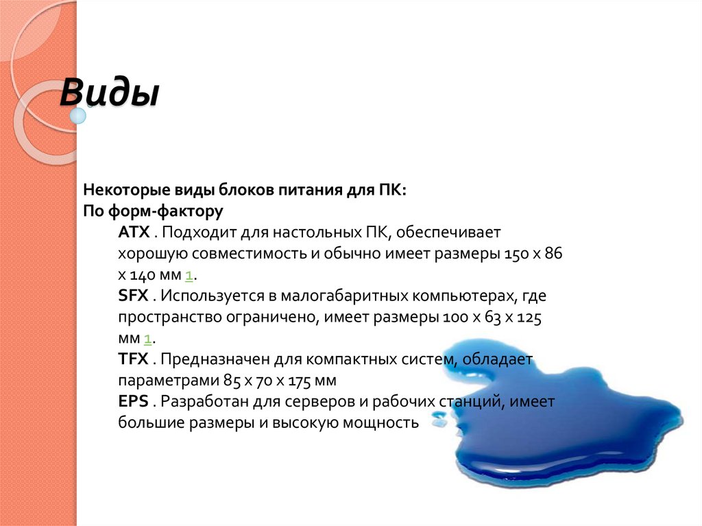 Некоторые виды блоков питания для ПК:По форм-фактору