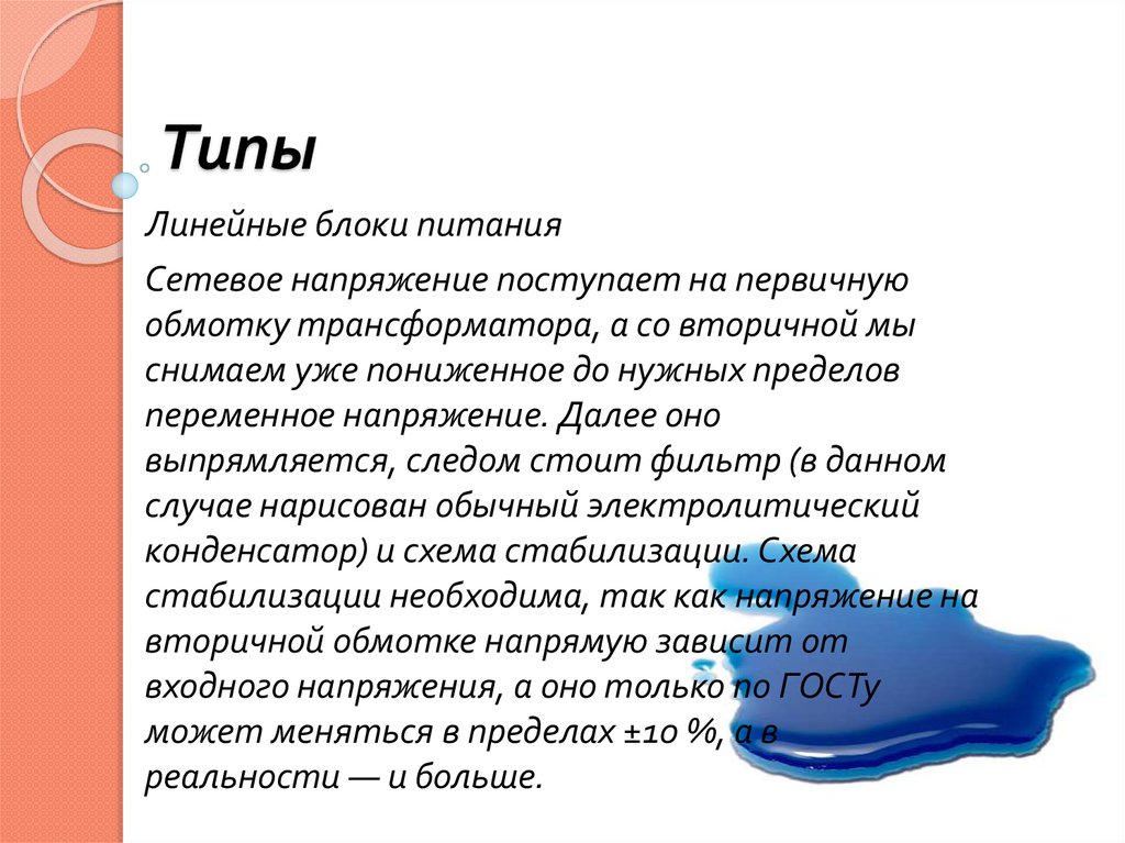 Линейные блоки питанияСетевое напряжение поступает на первичную