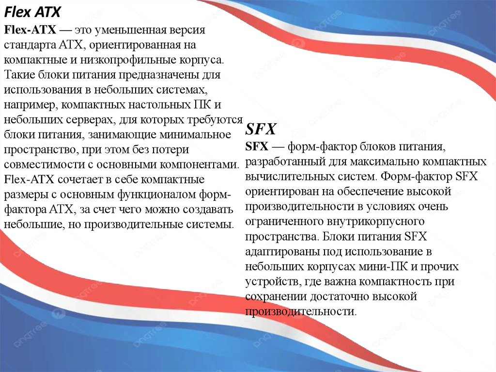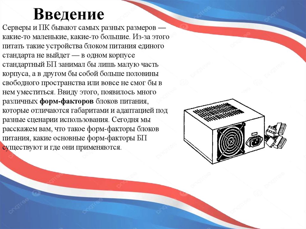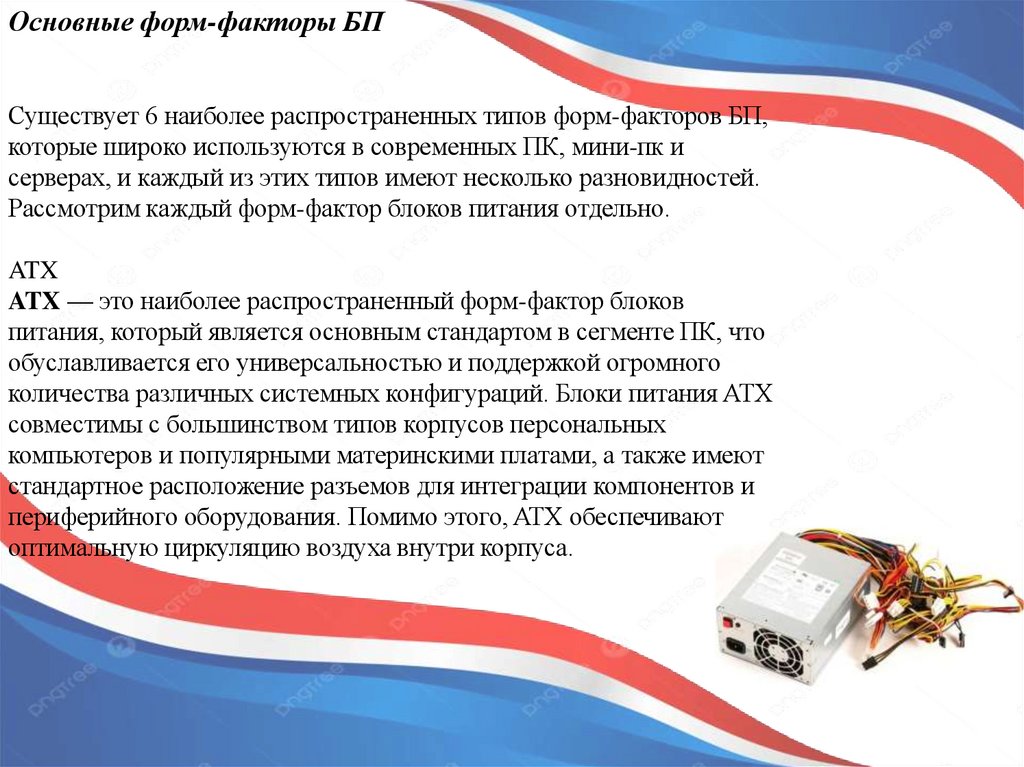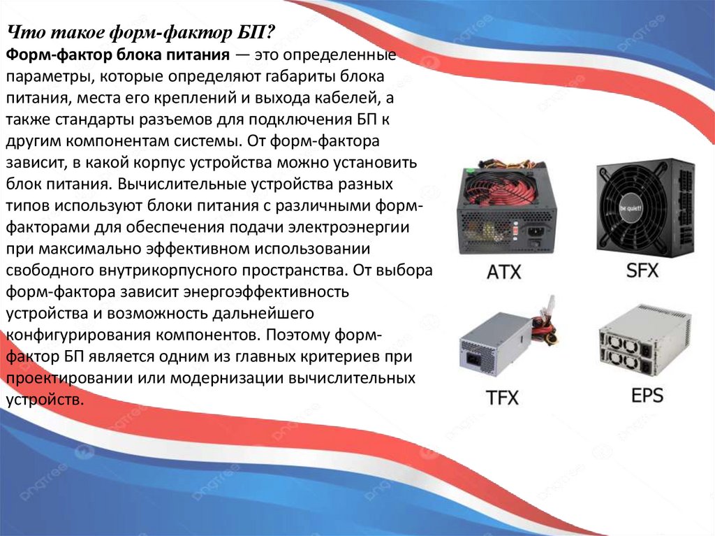 типов используют блоки питания с различными формфакторами для обеспечения подачи электроэнергии
