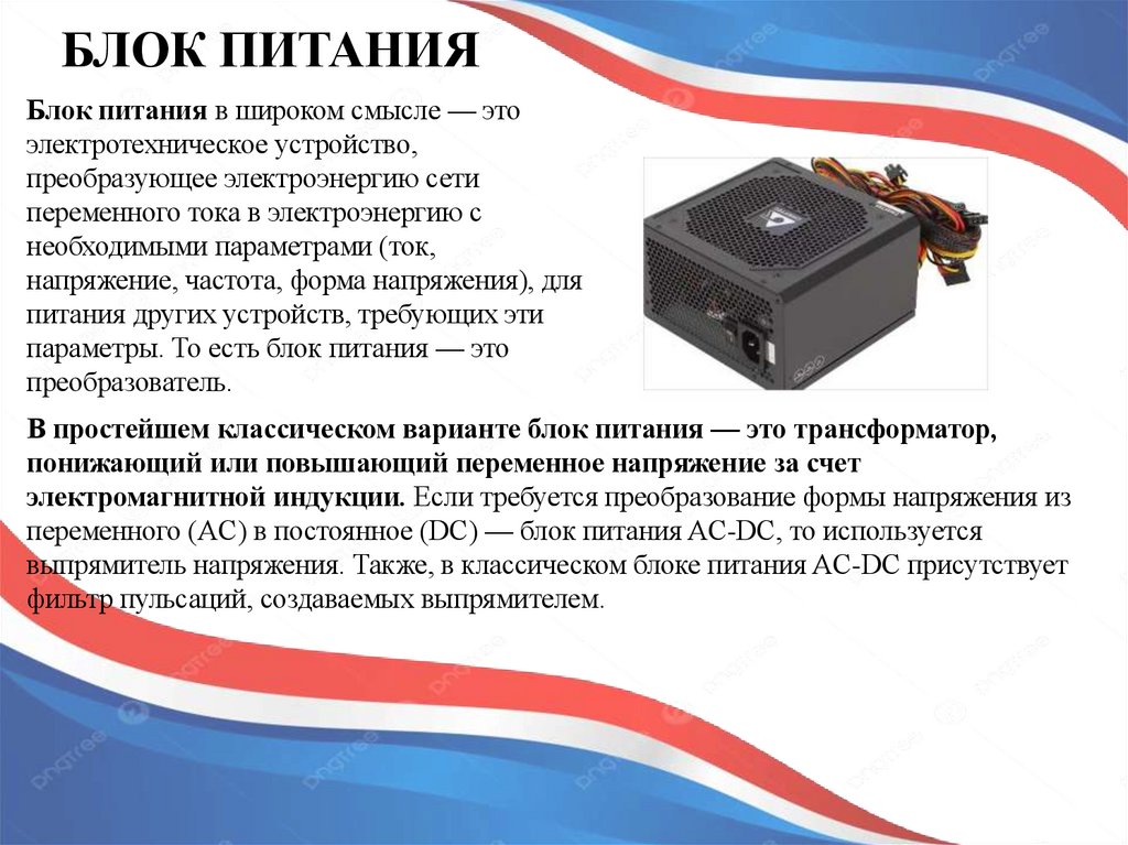 Блок питания в широком смысле — этоэлектротехническое устройство,