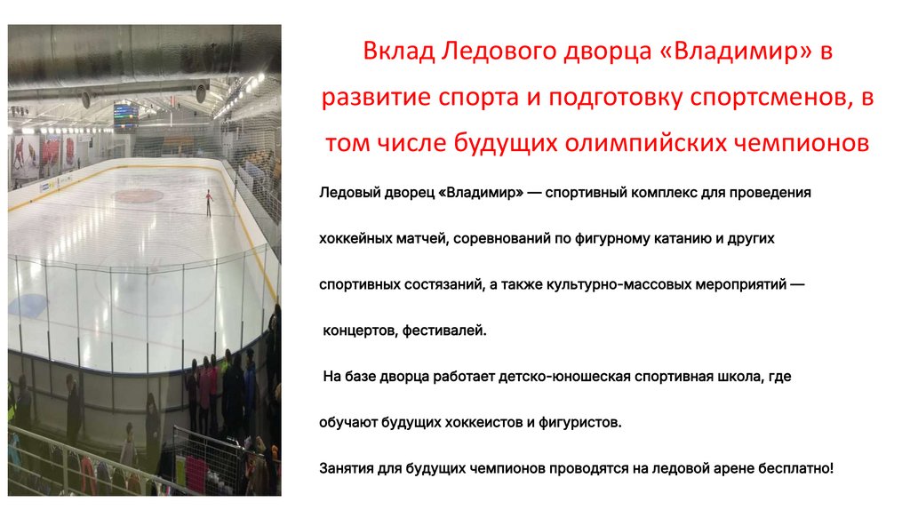 Вклад Ледового дворца «Владимир» вразвитие спорта и подготовку спортсменов, в