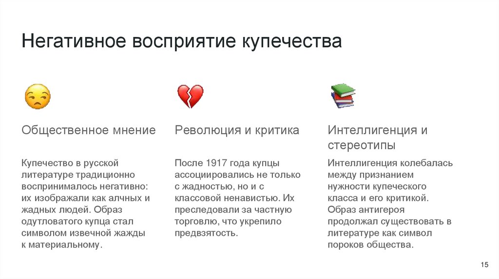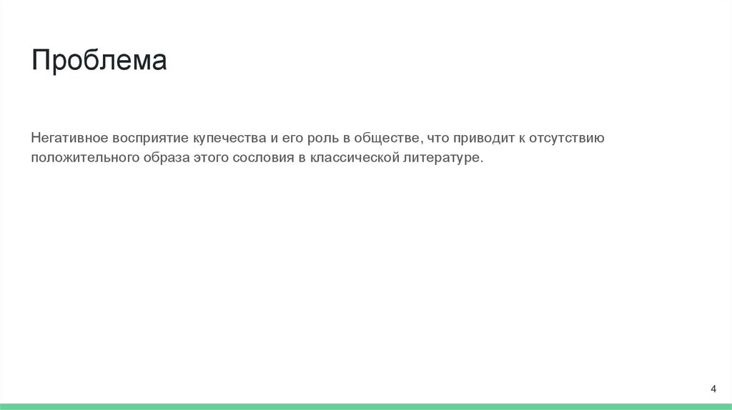 ПроблемаНегативное восприятие купечества и его роль в обществе, что приводит к отсутствию