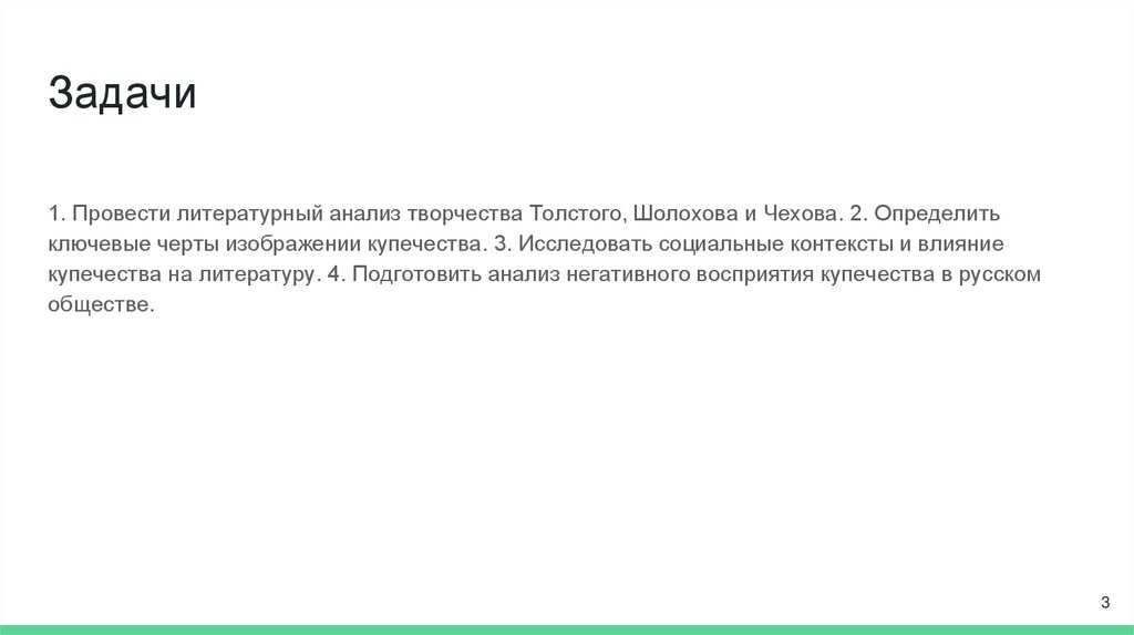 Задачи1. Провести литературный анализ творчества Толстого, Шолохова и Чехова. 2. Определить