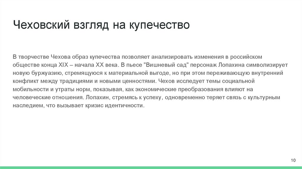 Чеховский взгляд на купечествоВ творчестве Чехова образ купечества позволяет анализировать изменения в российском