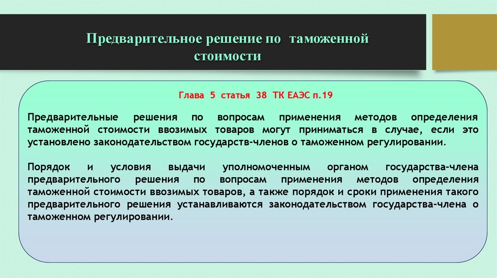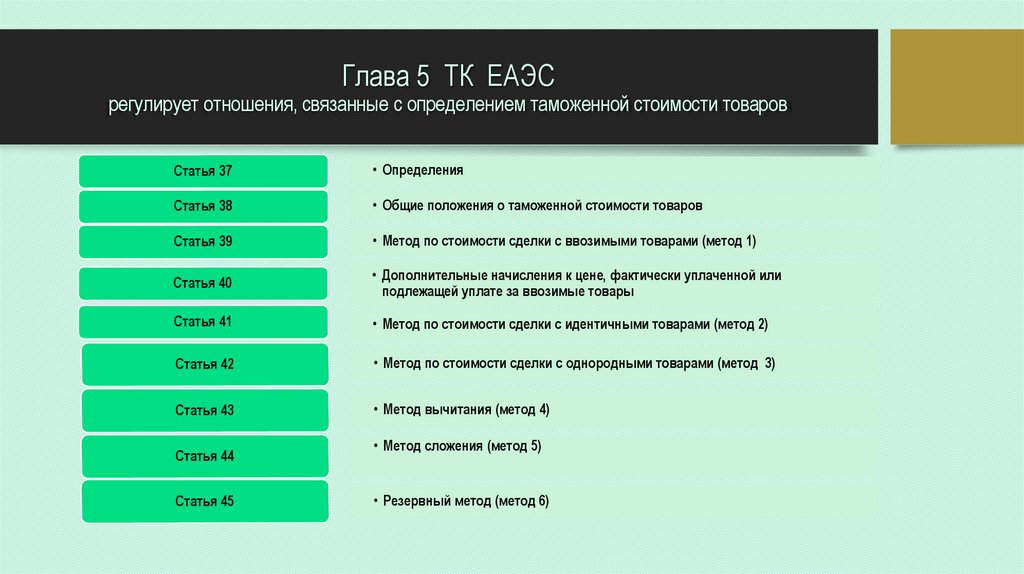 Глава 5 ТК ЕАЭСрегулирует отношения, связанные с определением таможенной стоимости товаров