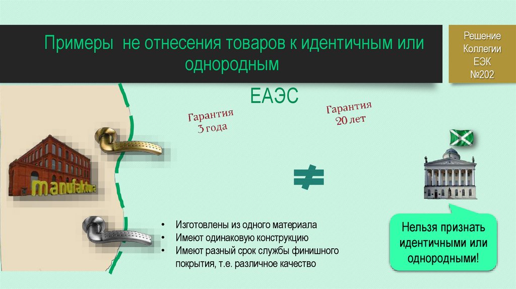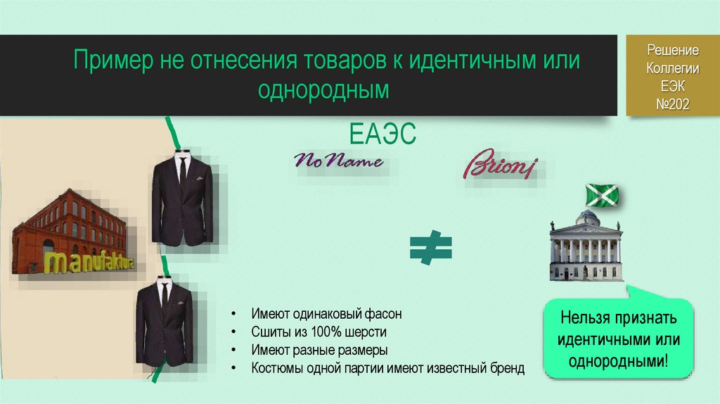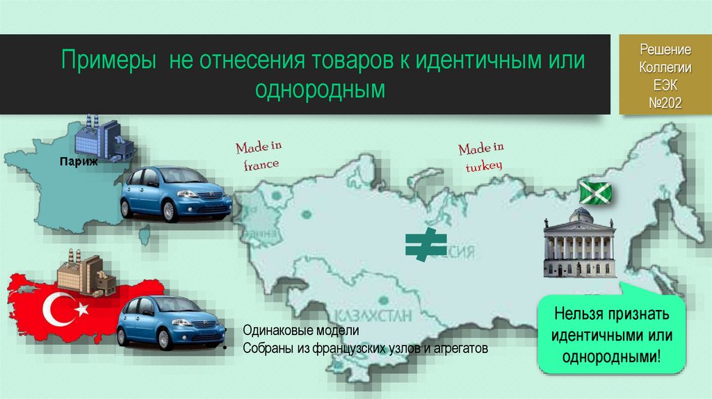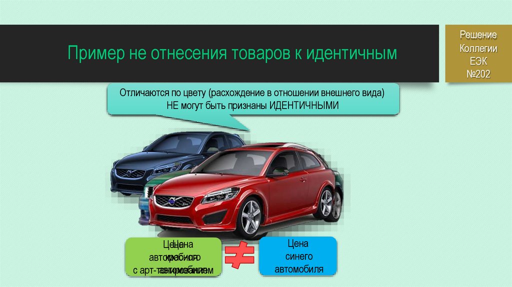 Пример не отнесения товаров к идентичнымОтличаются по цвету (расхождение в отношении внешнего вида)