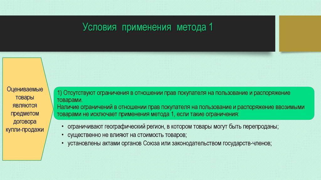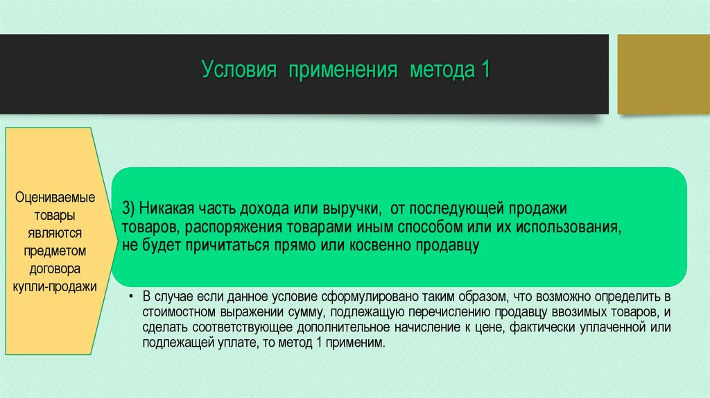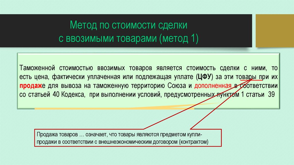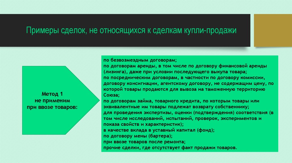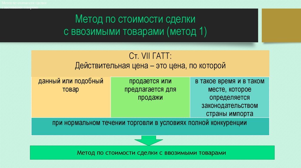 • Метод по стоимости сделки с ввозимыми товарами (метод 1)