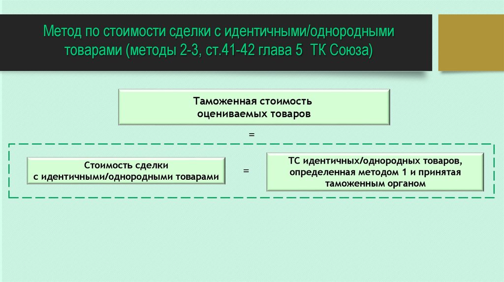 • Метод по стоимости сделки с идентичными товарами (метод 2)