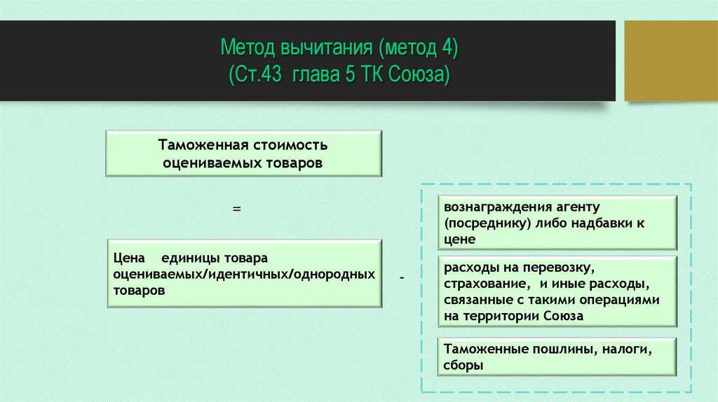 Метод вычитания (метод 4)(Ст.43 глава 5 ТК Союза)