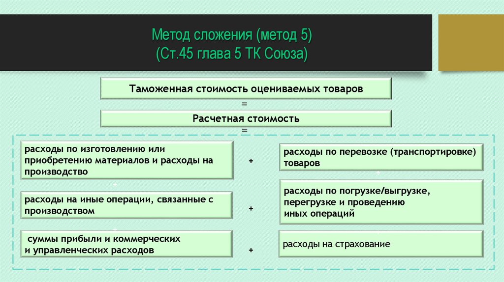 Метод сложения (метод 5)(Ст.45 глава 5 ТК Союза)