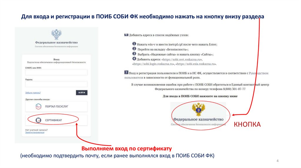 (необходимо подтвердить почту, если ранее выполнялся вход в ПОИБ СОБИ ФК)