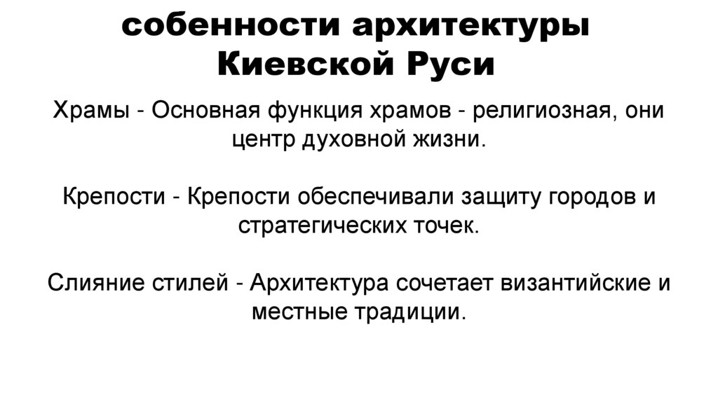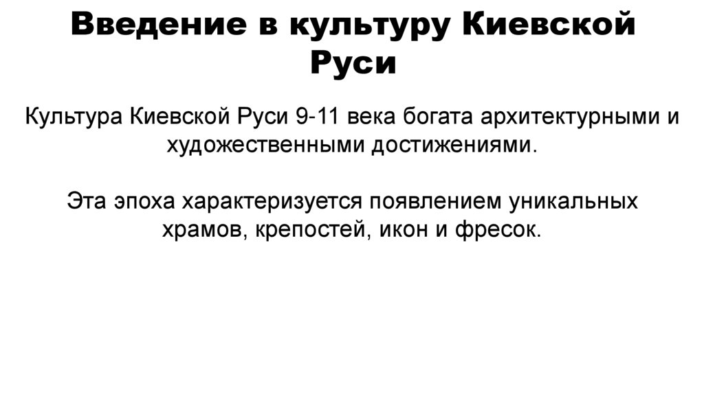 Культура Киевской Руси 9-11 века богата архитектурными и