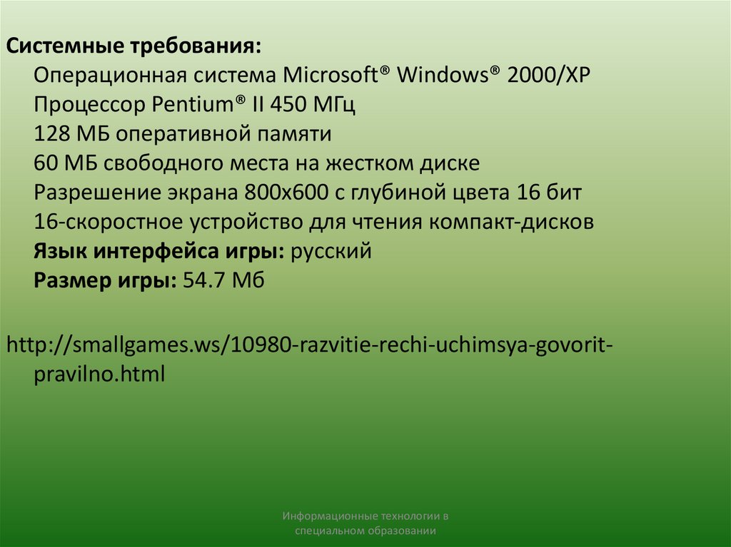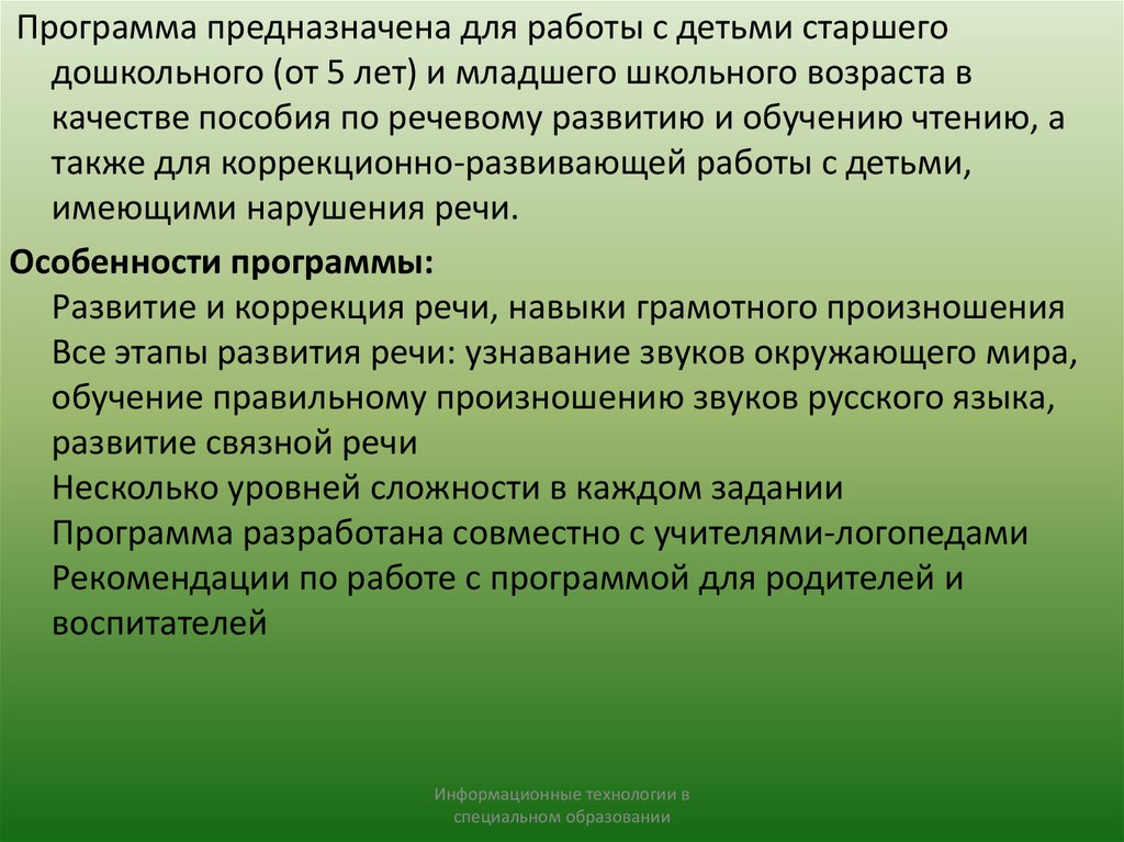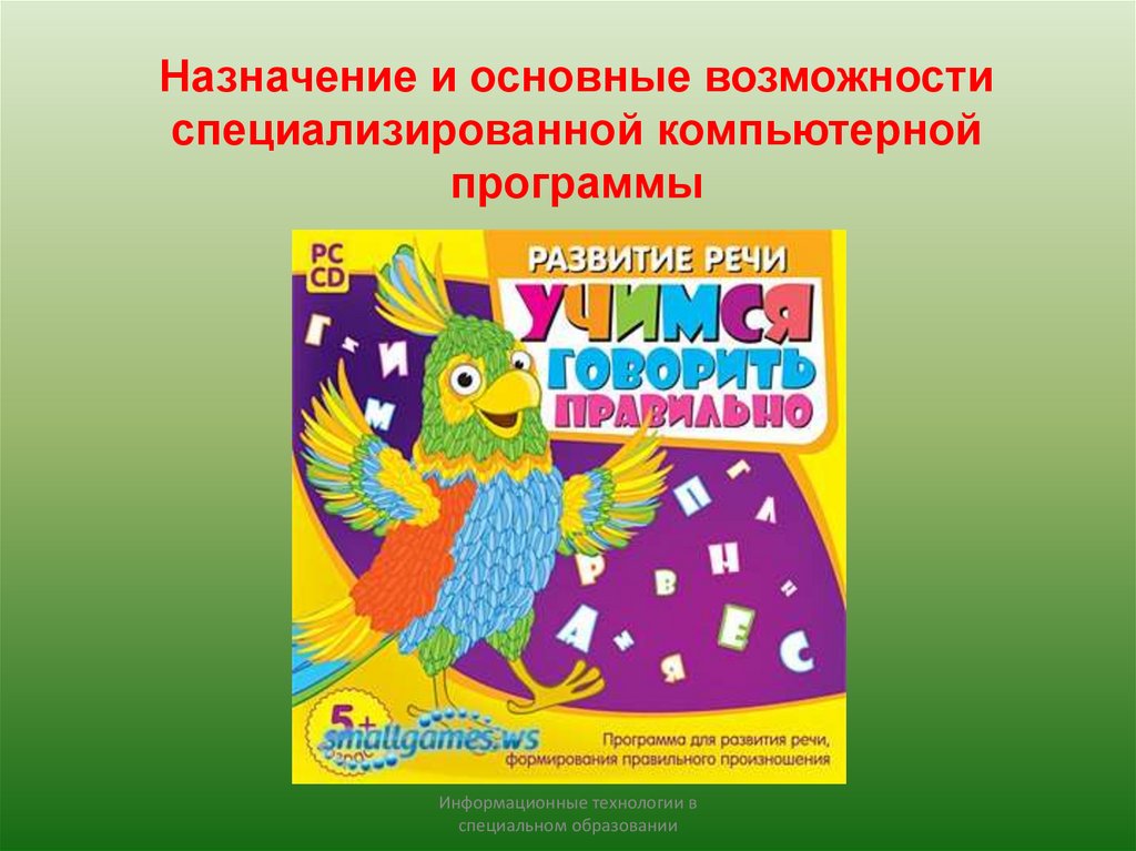 Назначение и основные возможности специализированной компьютерной программы. Информационные технологии в специальном образовании