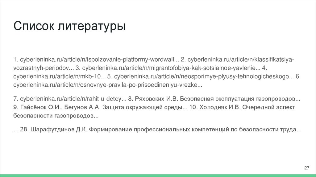 Список литературы1. cyberleninka.ru/article/n/ispolzovanie-platformy-wordwall... 2. cyberleninka.ru/article/n/klassifikatsiyavozrastnyh-periodov... 3. cyberleninka.ru/article/n/migrantofobiya-kak-sotsialnoe-yavlenie... 4.