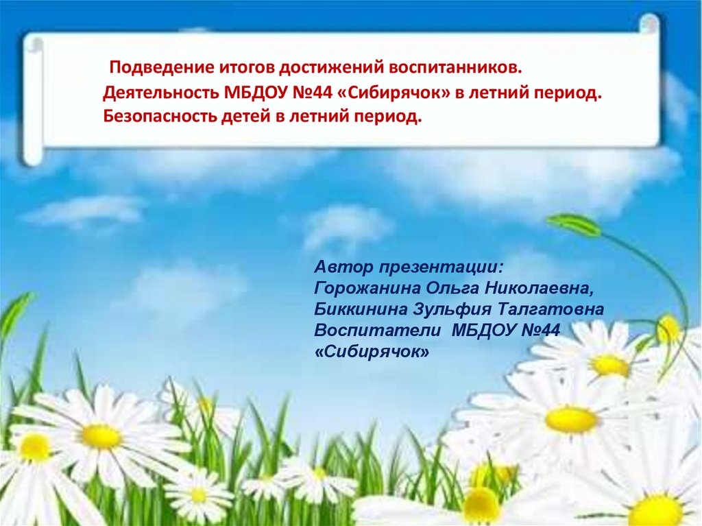Подведение итогов достижений воспитанников. Деятельность МБДОУ №44 «Сибирячок» в летний период