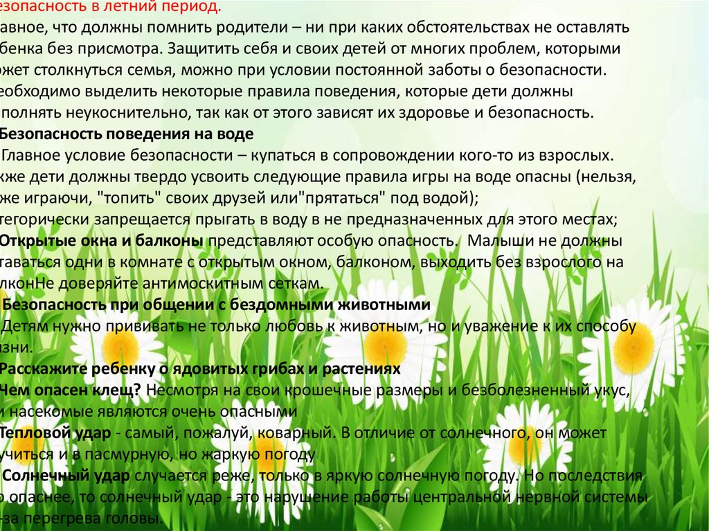 Безопасность детей в летний период.