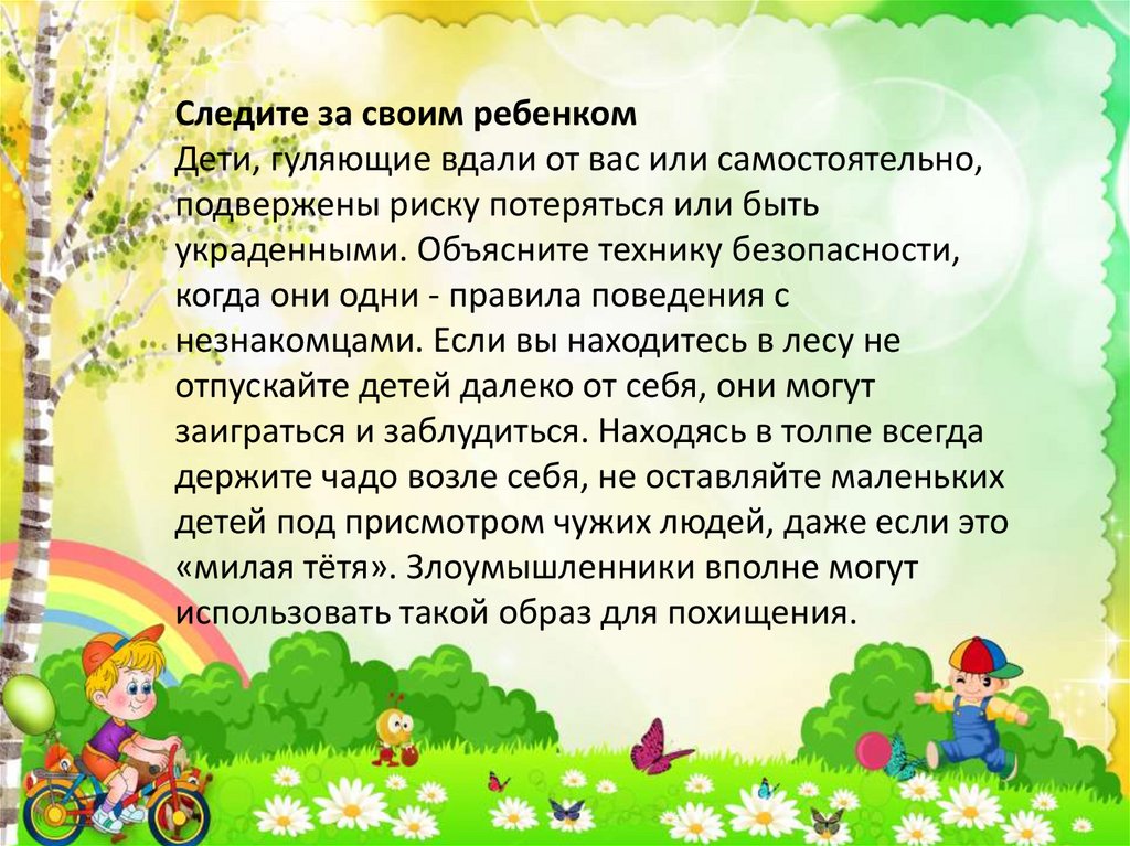 Следите за своим ребенкомДети, гуляющие вдали от вас или самостоятельно,