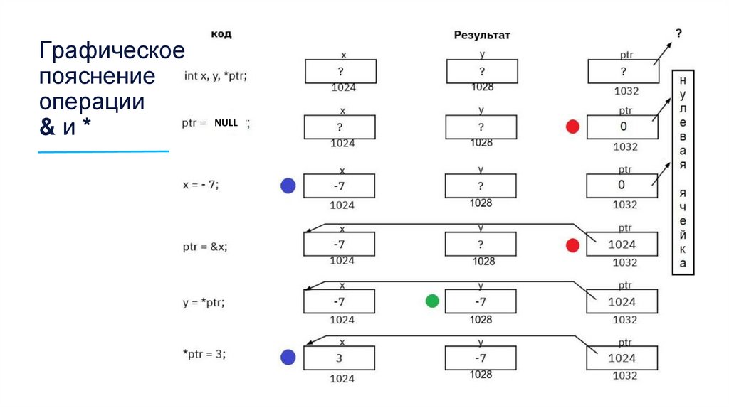 y = *ptr; // Записываем в y значение на которое указывает