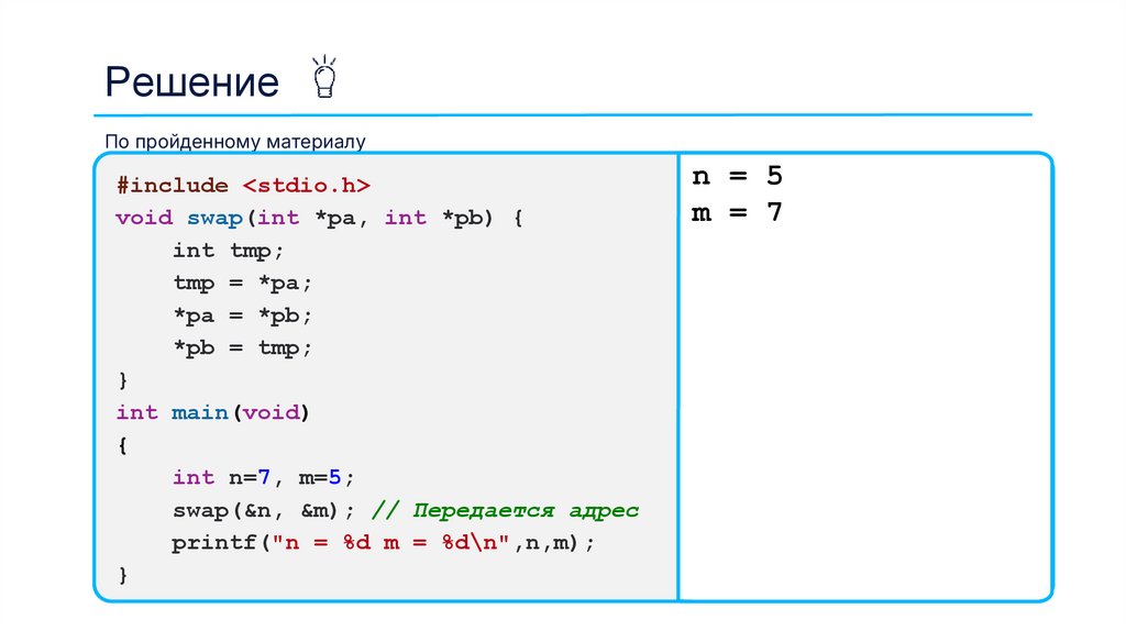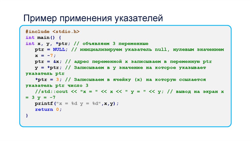 Пример применения указателей#include <stdio.h>