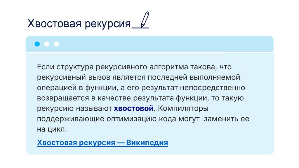 Хвостовая рекурсияЕсли структура рекурсивного алгоритма такова, что