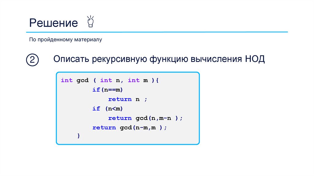 Описать рекурсивную функцию вычисления НОД