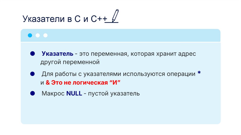 Указатели в С и С++Указатель - это переменная, которая хранит адрес