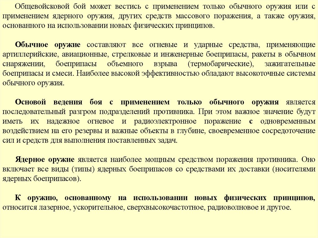 ведение боя как с применением обычного оружия, так и с применением ядерного оружия и