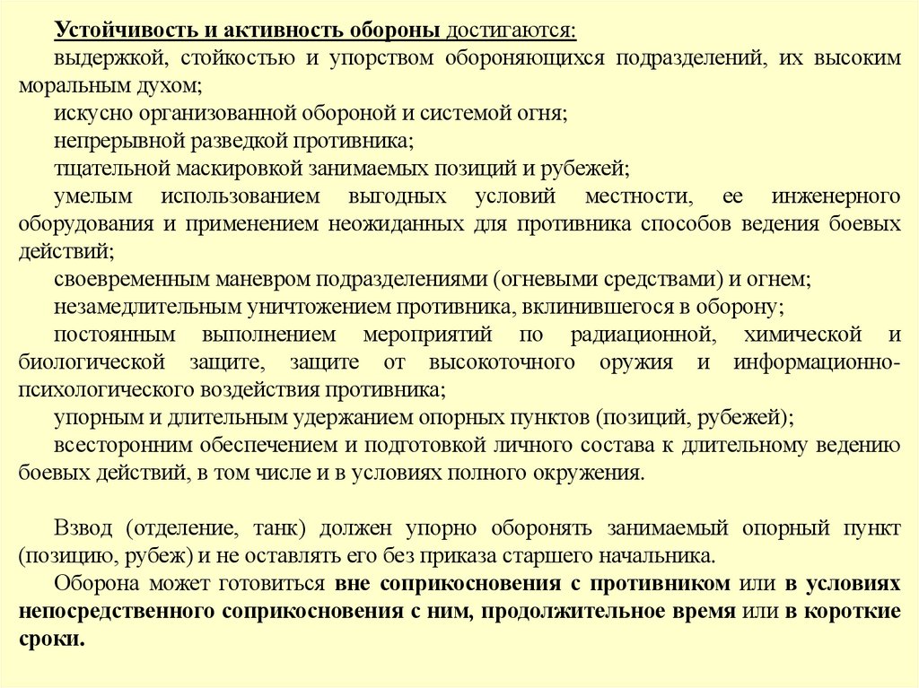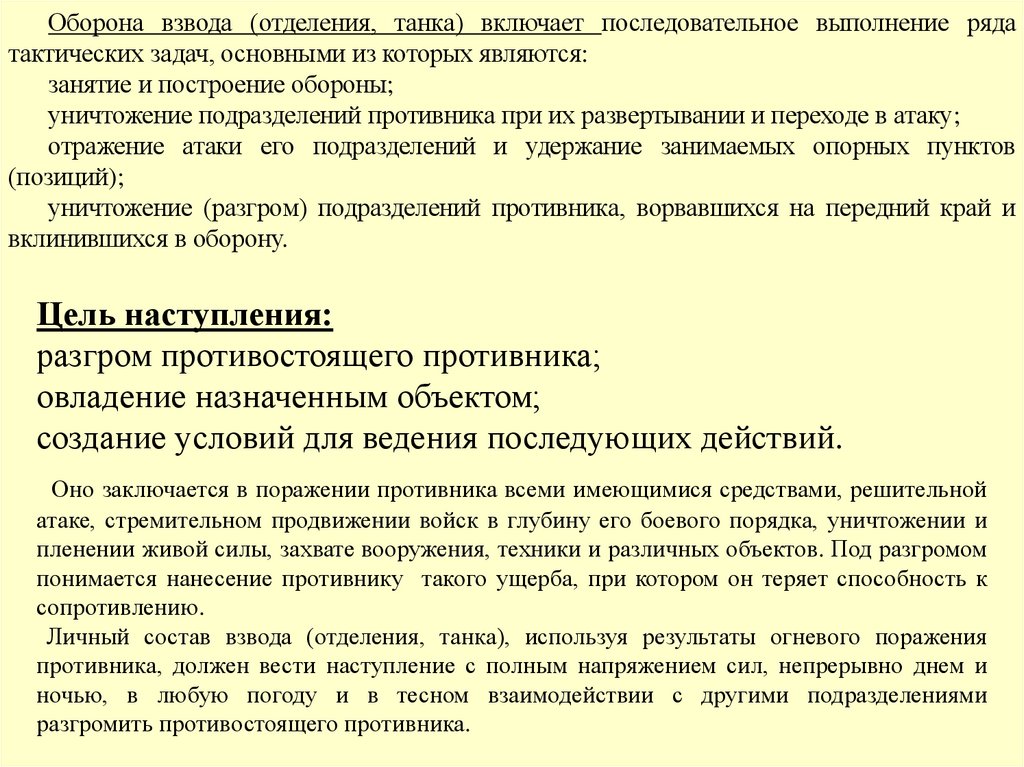 противника, прочному удержанию занимаемых позиций и объектов, захвату его